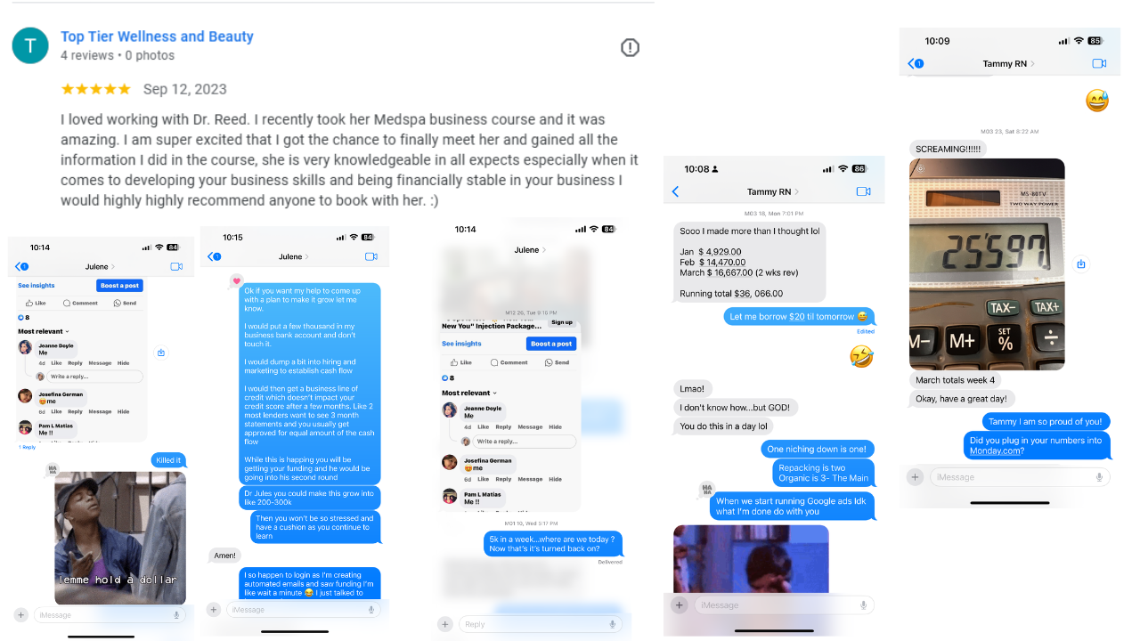 Look at my testimonials to see how other medspa owners have transformed their businesses with these proven funnels and strategies!